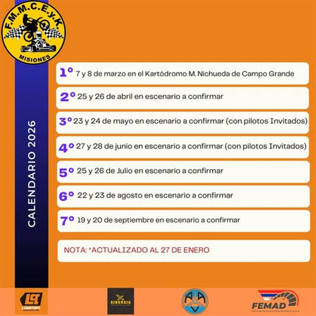 AGENCIA MISIONES.UNO | El Campeonato Misionero de Karting en trazados terrados iniciará su calendario 2026 el fin de semana del 7 y 8 de marzo en el Kartódromo Mauro Nichueda de Campo Grande.