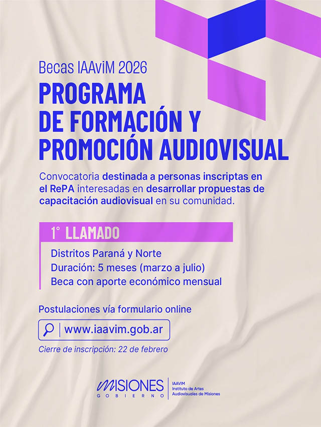 AGENCIA MISIONES.UNO | El Instituto de Artes Audiovisuales de Misiones (IAAviM) presentó la convocatoria a las Becas IAAviM 2026 – Programa de Formación y Promoción Audiovisual, destinada a fortalecer la capacitación y la circulación de saberes en las comunidades de la provincia.